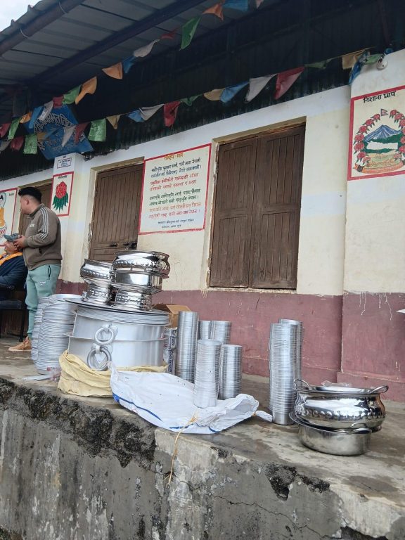सहयोगमा ३ सय थान थाल, ३ सय थान कचौरा, २ थान डेक्ची, १ थान डाडु–पनिउ, ६ थान बाटा, ३ थान खाना राख्ने सेट तथा ५ सय थान चम्चा प्रदान गरिएको छ ।