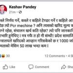 कोरोनाको संकट ग्रस्त अबस्थामा पनि नुवाकोटमा गुटको राजनिती मौलाएको सामाजिक संजाल प्रयोग कर्ताहरुले बताएका छन् । तर ५० लाख पर्ने मेसिन ७६ लाख कसरी पर्ला ? भनेर सर्वसाधार अलमलमा परेका
